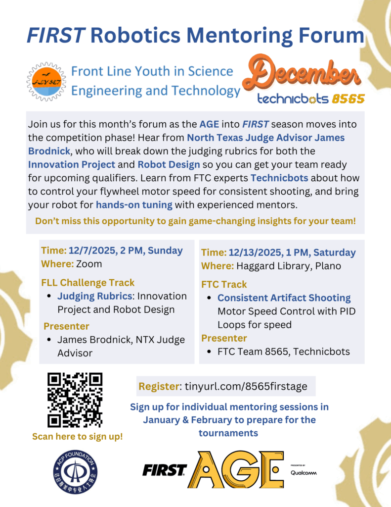 We are glad to mentor any FIRST teams in FLL Explore, FLL Challenge, or FTC.